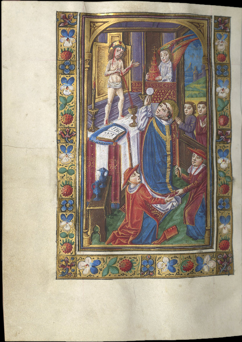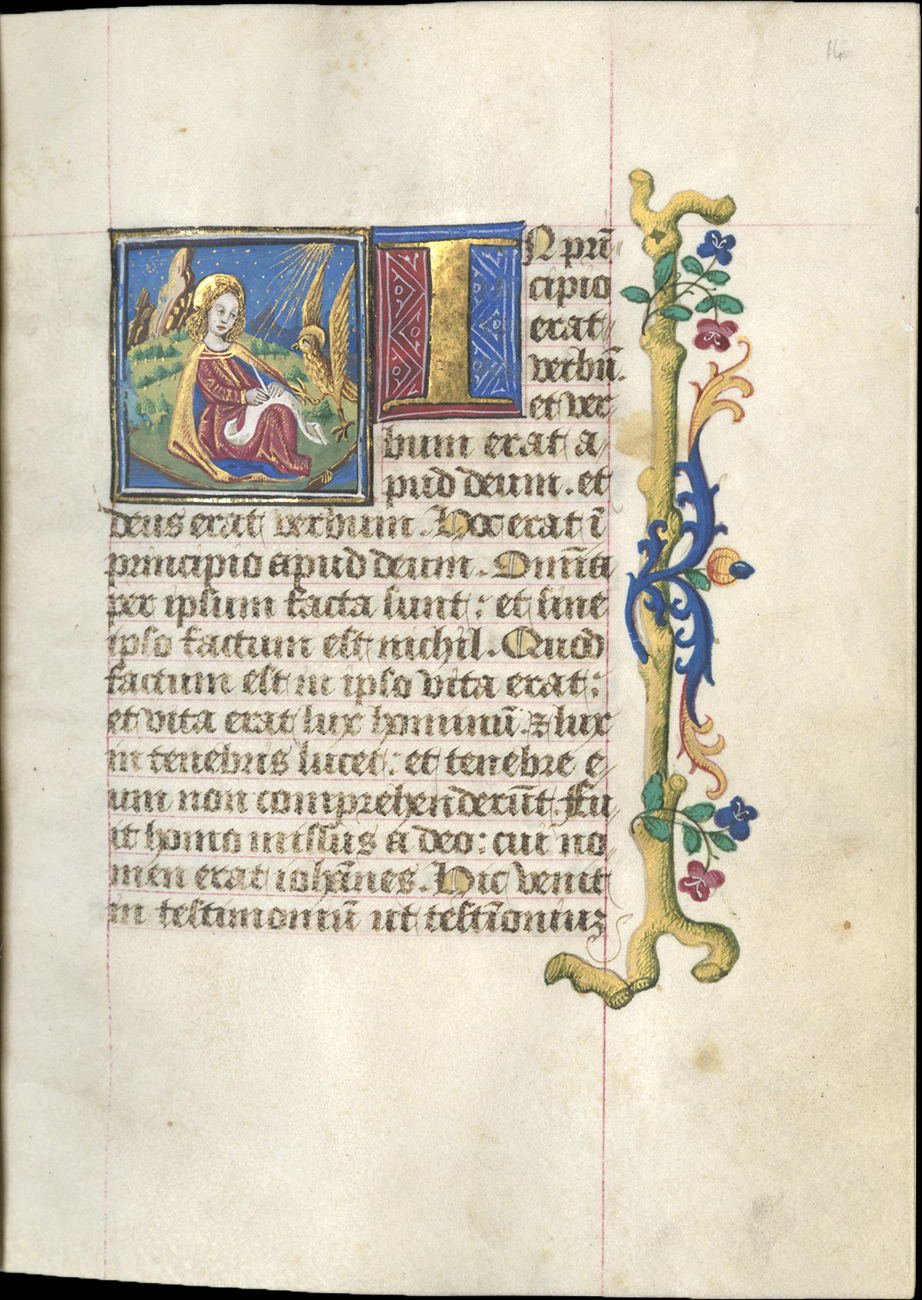 This finely painted, jewel-like manuscript in virtually perfect condition fits securely in a small but coherent group of manuscripts that come from a rare center in the Dauphiné, perhaps the town of Grenoble, and is associated by the Master of the Apocalypse of Aymar de Poitiers. This manuscript was custom-made for a member of the important La Baume family established in Savoy, whose arms appear in the manuscript and who perhaps held a special devotion to the Swedish mystic St. Bridget. The narrative borders surrounding the main miniatures and developing the story line, are full of charm.
