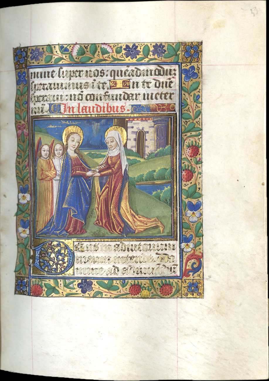 f. 33, Visitation, with two angels attending the Virgin;