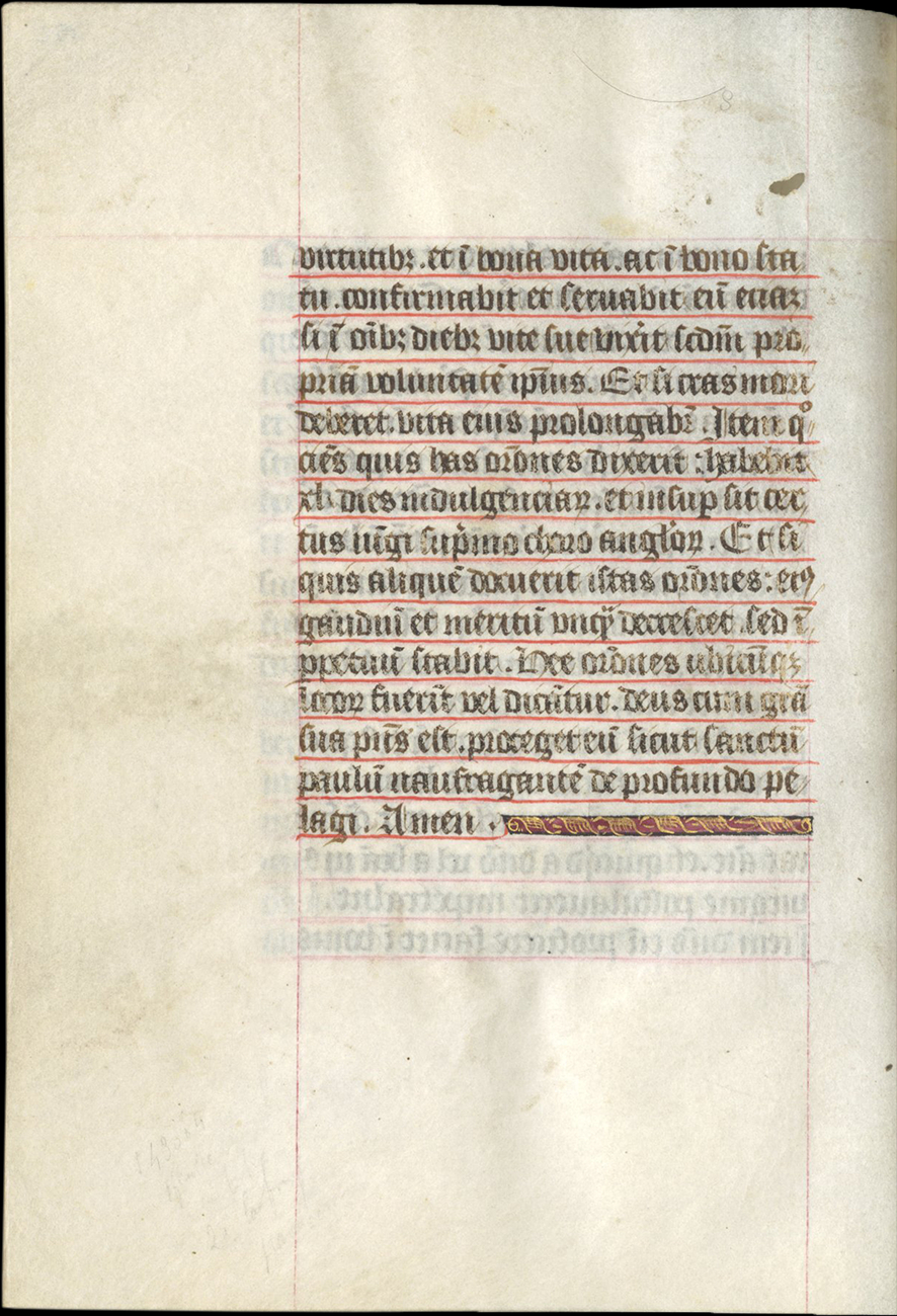 ff. 139-140v, Prayer for the Deceased, with papal indulgence for those who pronounce it, rubric, "Papa Iohannes duodecimus concessit omnibus transeuntibus..."; incipit, “Avete omnes anime Christi fideles...”;