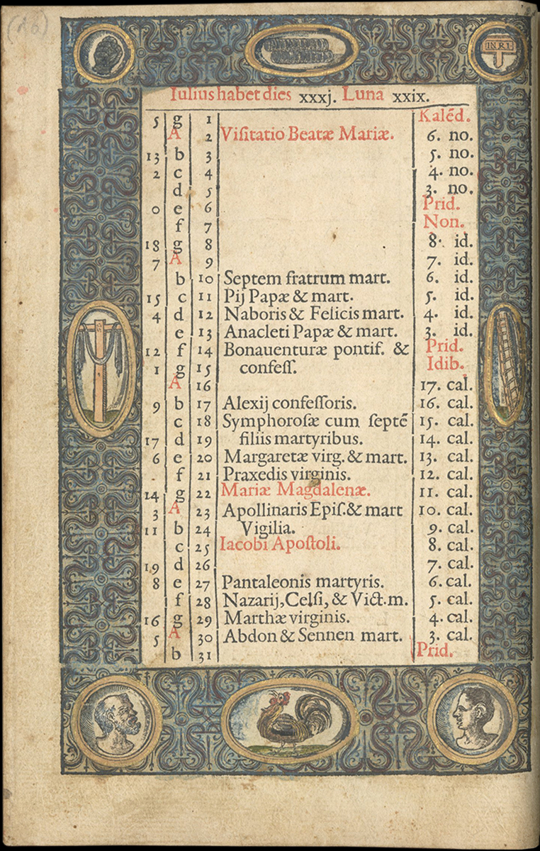 pp. 10-16, Calendar, January-July; [Lacking pp. 17-32];