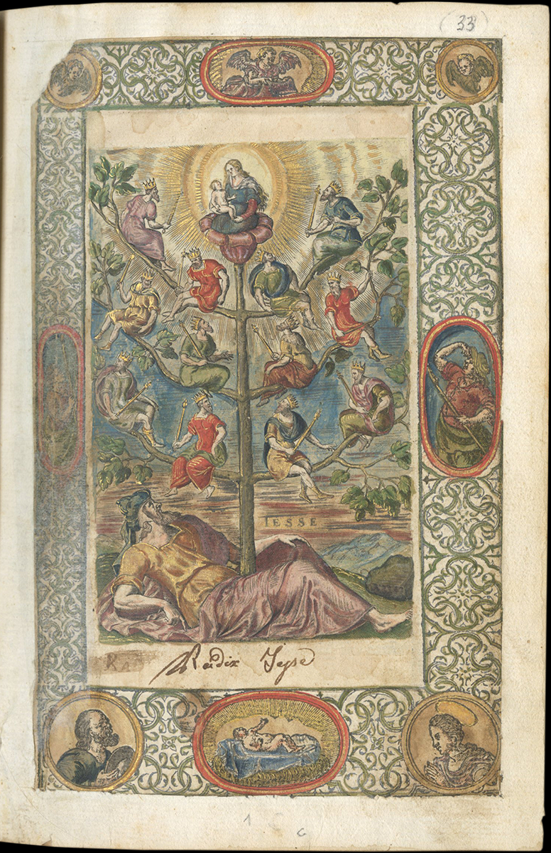 2. Annotated, “Radix Jesse” under the miniature on p. 33 in the nineteenth century.