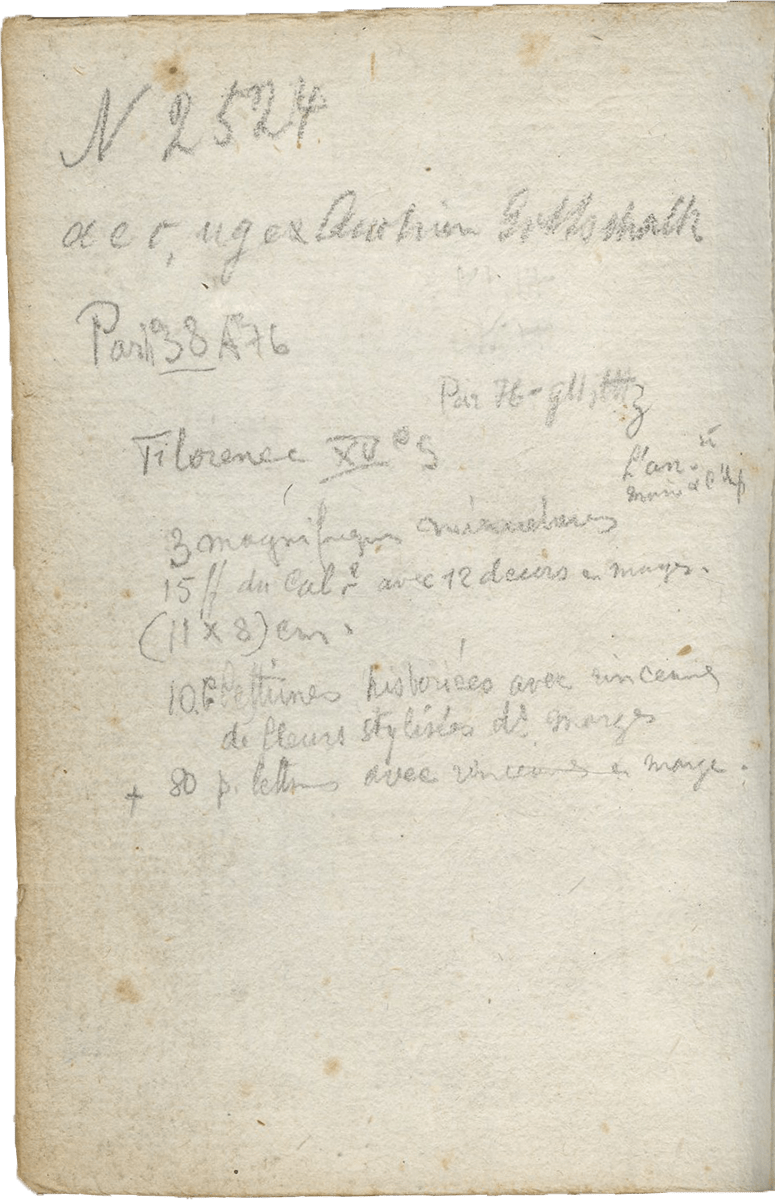 4. Previously sold by the German bookseller Paul Gottschalk (1880–1969), with inventory no. 2524 and brief catalog description penciled on the verso of the first flyleaf. Gottschalk operated his business in The Hague during the years of WWII, from 1940 until he moved permanently to the United States in 1945.