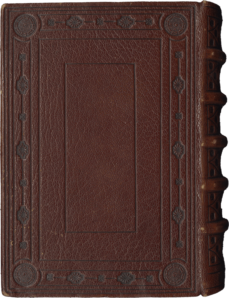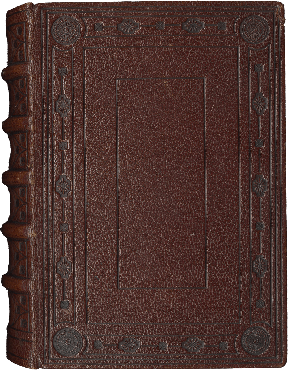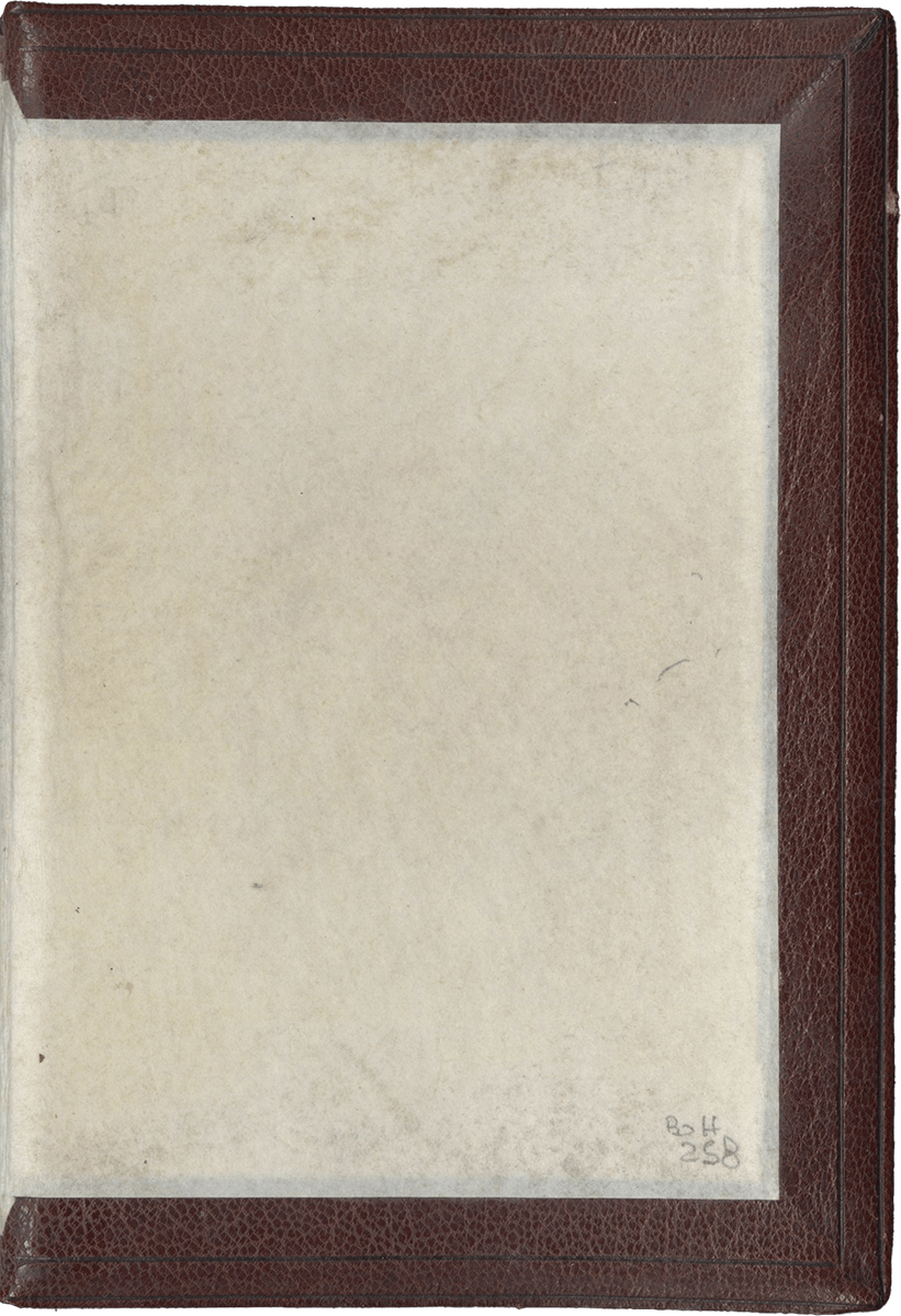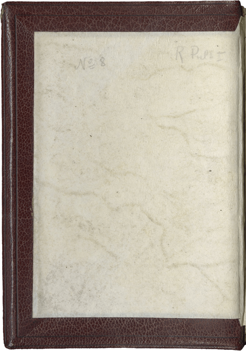 213 ff., with three first leaves ruled blanks (grid of fourteen lines, some offset on fol. 3v), first page of calendar is found on fol. 4, last leaves (ff. 210-213) are blank ruled leaves with owner’s inscription on fol. 213v (some offset on ff. 210-211), two original pastedowns preceded by two modern flyleaves and followed by two original pastedowns (preserved when the codex was rebound, the word “Paris” and traces of a pasted label or former bookplate on recto of the second pastedown) and two modern parchment flyleaves, complete [collation : [quire of 3, ruled blank leaves, inscriptions on recto of first leaf of this gathering] + i12, ii8, iii8, iv8, v8, vi8, vii8, viii8, ix8, x8, xi8, xii8, xiii8, xiv8, xv8, xvi8, xvii8, xviii8, xix8, xx8, xxi8, xxii8, xxiii6, xxiv8, xxv8, xxvi4, xxvii4 (this last quire is composed of ruled blank leaves)], some catchwords, written in brown ink in a Gothic liturgical script (two modules of script) on up to 13 lines, change of hands on ff. 109v-111v and again ff. 207v-209 (added final prayers, two different hands, both fifteenth-century), ruled in pale red ink (justification : 52 x 78 mm), rubrics in bright red (in Latin and some in French), one and two-line high initials in burnished gold on blue and dark pink grounds with white tracery, line-fillers of the same type, large calendar KL initials in burnished gold on blue and dark pink grounds with white tracery, a few larger initials (two- to three lines high) in blue or dark pink on burnished gold or blue with white tracery grounds with decorated vine leaves (colored and burnished gold), some extending in the margins around burnished gold baguettes, marking the major textual divisions, with 12 MINIATURES set in illuminated borders with descending burnished gold baguettes, some with dragons, and vine leaves spiraling in the margins (Annunciation introducing the beginning of the Hours of the Virgin set in a more lavish border with illuminated baguettes, vine leaves, angels, a swan, a parrot (fol. 35); nota bene: space left blank for heraldic arms in the decorated initial placed below the miniature). Modern binding of brown calf, back sewn on 5 raised bands, imitation binding with blind-stamped decoration on back and boards (multiple frames traced with blind-stamped filets and frame with repeated blind-stamped fleurons), modern parchment pastedowns (on the pastedown, inscription in German, relative to the localization of the codex : “No. 8. R. Pult I”), edges gilt. Dimensions 152 x 105 mm.