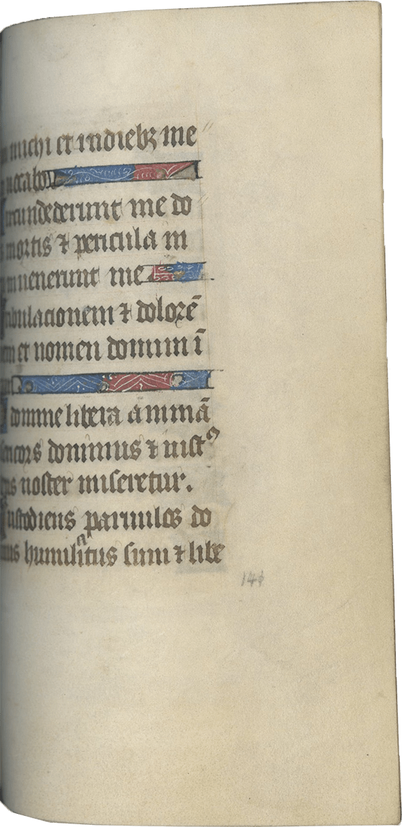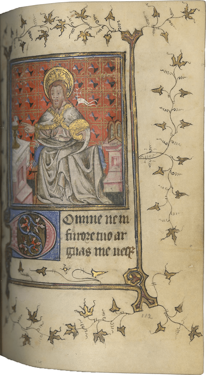 ff. 112-132v, Penitential Psalms followed by Litany (including: George, Denis, Maurice, Eustache, Nicolas, Martin) and Prayers; ff. 132v-136, Short Hours of the Cross; ff. 136v-140, Short Hours of the Holy Spirit;