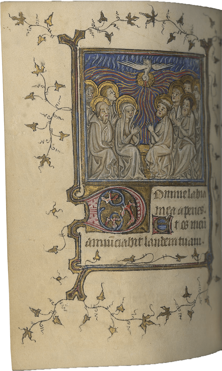 Manuscripts from the late fourteenth and early fifteenth centuries are always interesting discoveries as they provide additional witnesses to one of the most creative periods in French illumination. With strikingly original backgrounds (see for instance the highly original patterned backgrounds in the Pentecost) the grisaille elements in this manuscript confer additional elegance to fine miniatures in a Book of Hours once owned by an identified early female patron, Collette de Lautier. The renewed and corrected attribution of these Horae to this interesting Parisian artist, re-christened “Ravenelle Painter,” adds to our appreciation of this artist active in Paris at the time of the Duke of Berry.