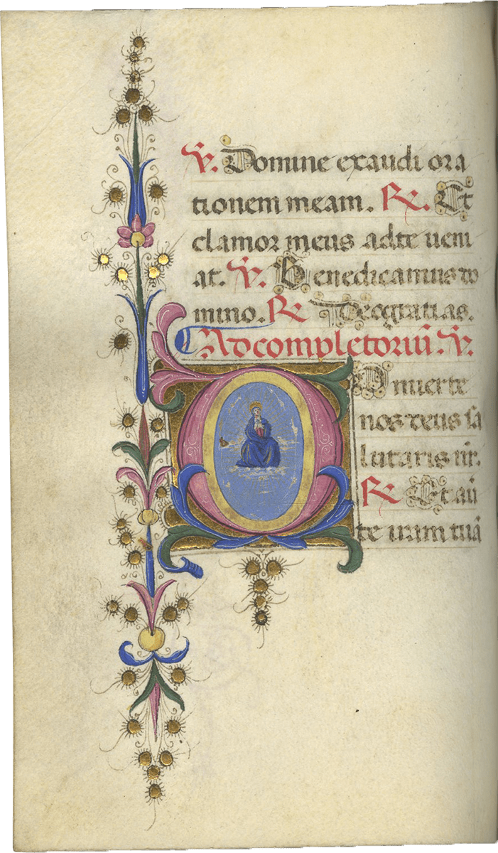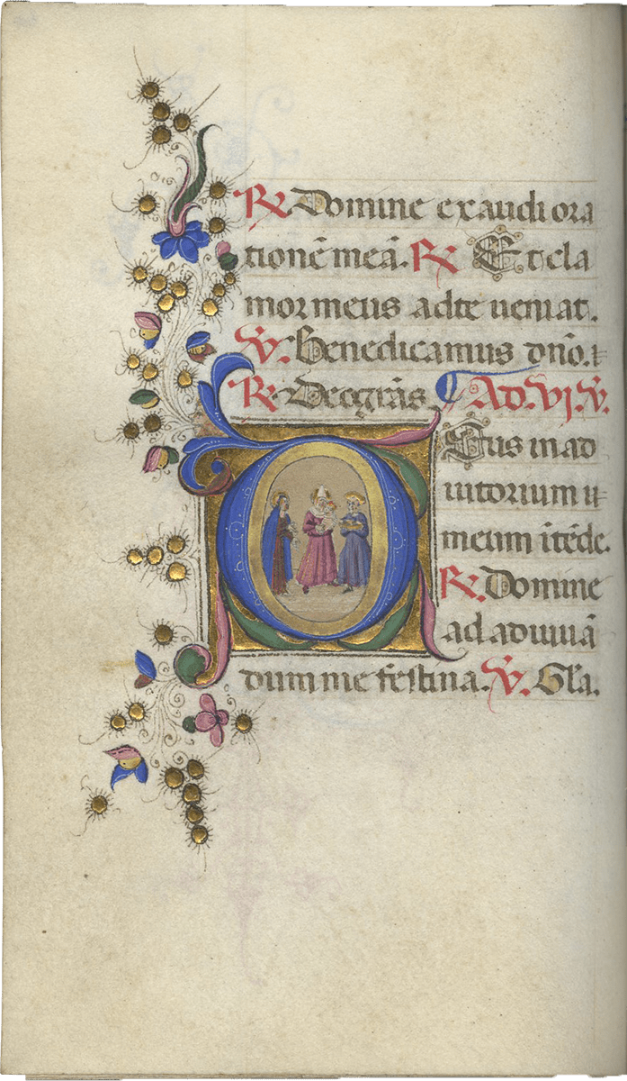 1. Written and illuminated in Florence. The Calendar includes St. Zenobius “episcopus florentini” (25 May) and SS. Donatus (7 August, bishop of Arezzo) and St. Reparata (8 October, relics in Florence).