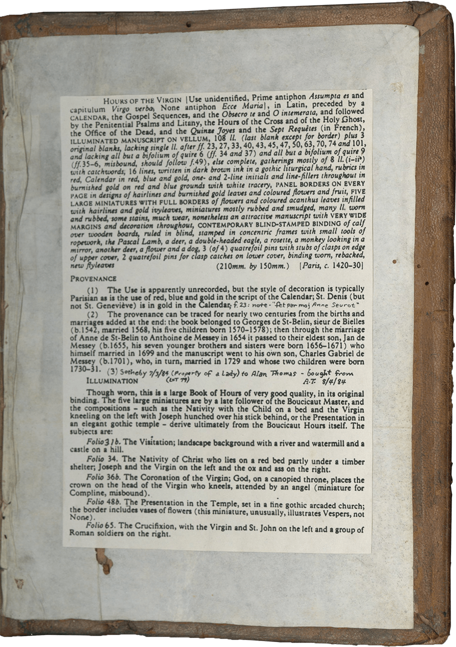 4. Sotheby’s, London, 7 March 1984, lot 79, as “The Property of a Lady,” the auction description pasted on the rear pastedown; where acquired by:
