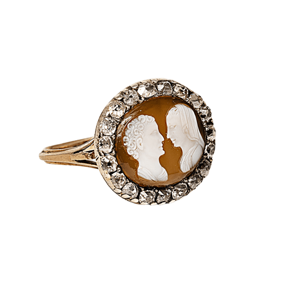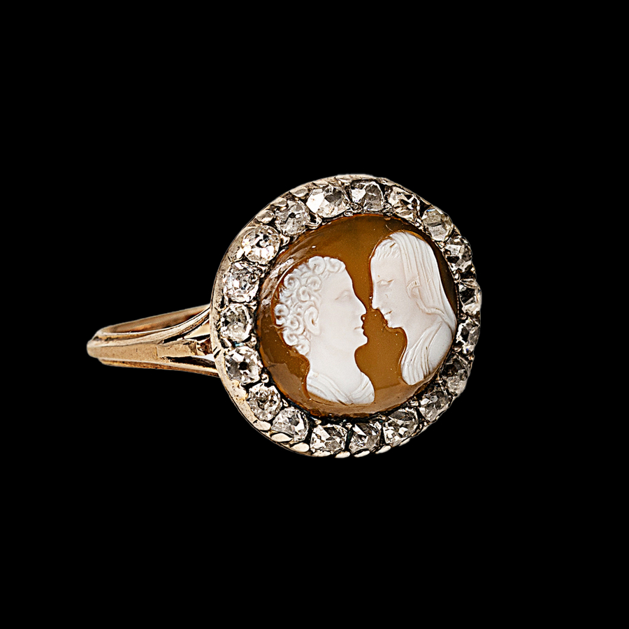Ring with Cameo and Double Portrait, Ring: England, c. 1800, Cameo: probably Italy, c. 1450-1500 Gold, silver, diamonds, agate cameo
