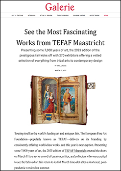Galerie Magazine features the splendid "Le Saunier Hours" is among the not-to-be-missed art and design picks from this year’s TEFAF Maastricht.